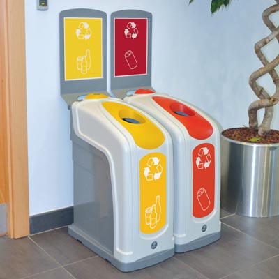Nexus 50 Recycling Bins can be placed at the end of desks without causing an obstruction, or sited side by side to form an attractive recycling centre.