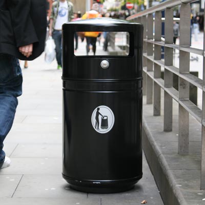 פח האשפה Metal Guppy עמיד באש ואידיאלי לאזורים בסיכון גבוה.